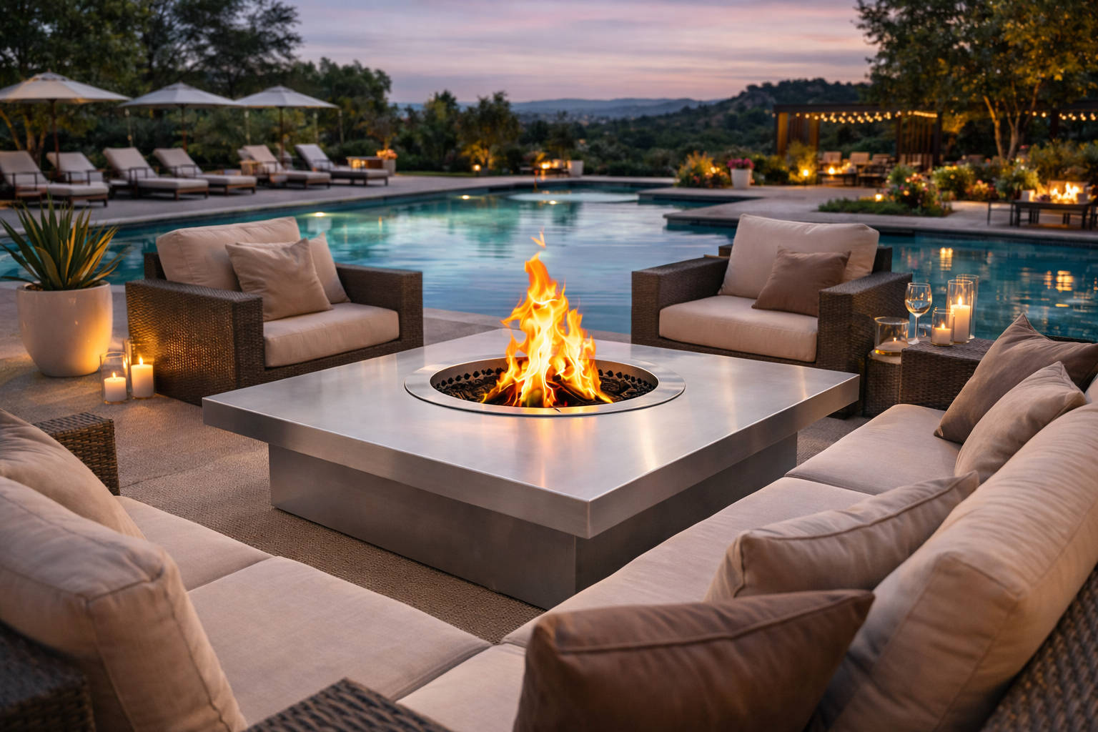 Fire pits sin humo, mesas y muebles de acero inoxidable hechos para durar.